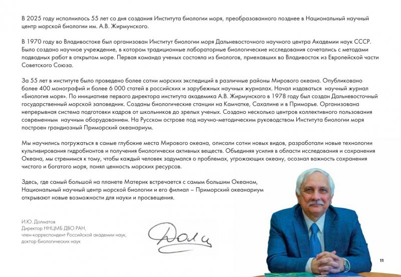 Федеральное государственное бюджетное учреждение науки «Национальный научный центр морской биологии им. А.В. Жирмунского» Дальневосточного отделения Российской академии наук представляет информационный буклет.