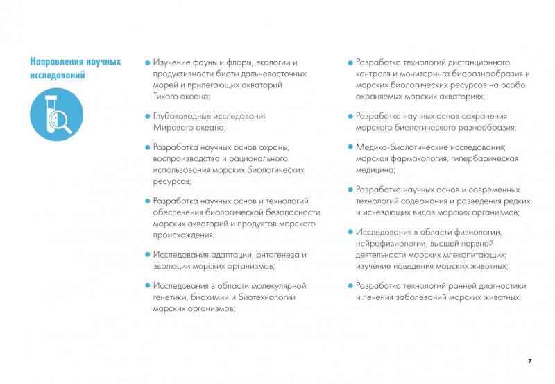 - выполнение фундаментальных, поисковых и прикладных научных исследований в области морской биологии, биотехнологии и смежных наук;